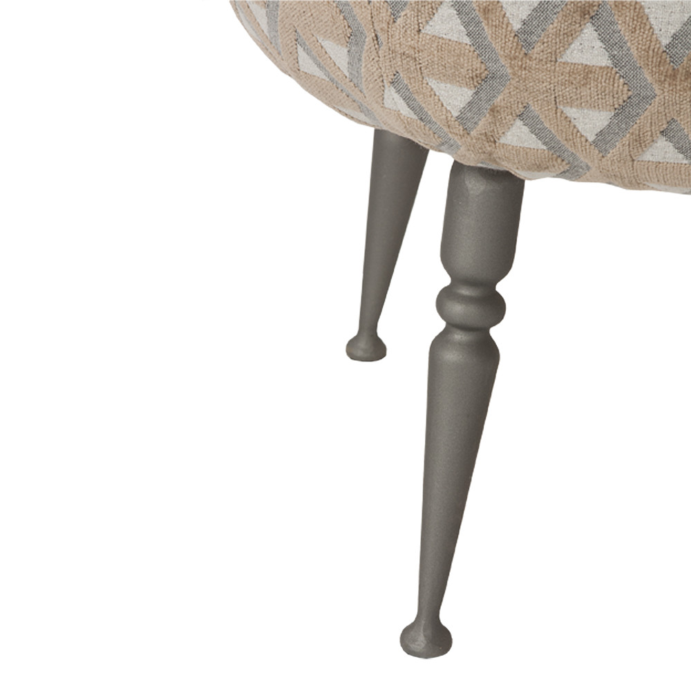 Ножки выполнены из легированной стали. В обивке используется ткань – шенилл, которая обладает рядом достоинств: высокая износостойкость, экологичность, цветоустойчивость.