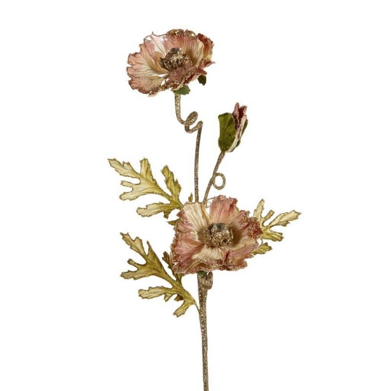 Цветы GW П72010 Ветка с розами c блестками  золотой розовый