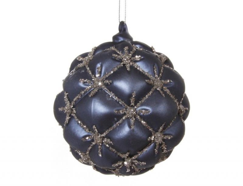 Елочная игрушка ИТАЛИЯ 48426 Шар с орнаментом ромбы 8см синий