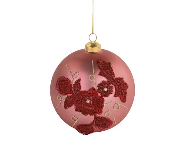 Елочная игрушка ИТАЛИЯ 27185 Шар с белыми цветами красный