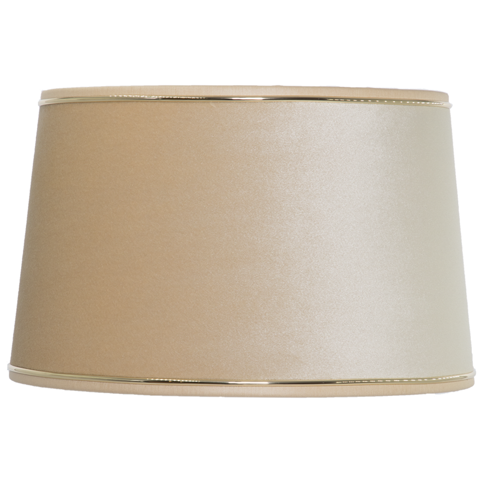 Абажур с нижним способом крепления, имеет конструкцию, основой которой служит металлический каркас с применением технологии порошковой покраски и креплением под цоколь E27(стандартный – Ø 4 см). Высота абажура указана от крепления. В отделке используется Голландский пластик обтянутый тканью - Абажур декорируется золотым молдингом. Мощность ламп: 60W