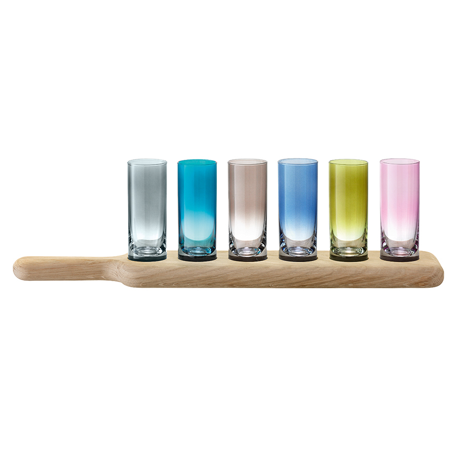 Посуда LSA International G1049-03-666 Набор рюмок для водки 6 стопок и деревянной подставки разноцв