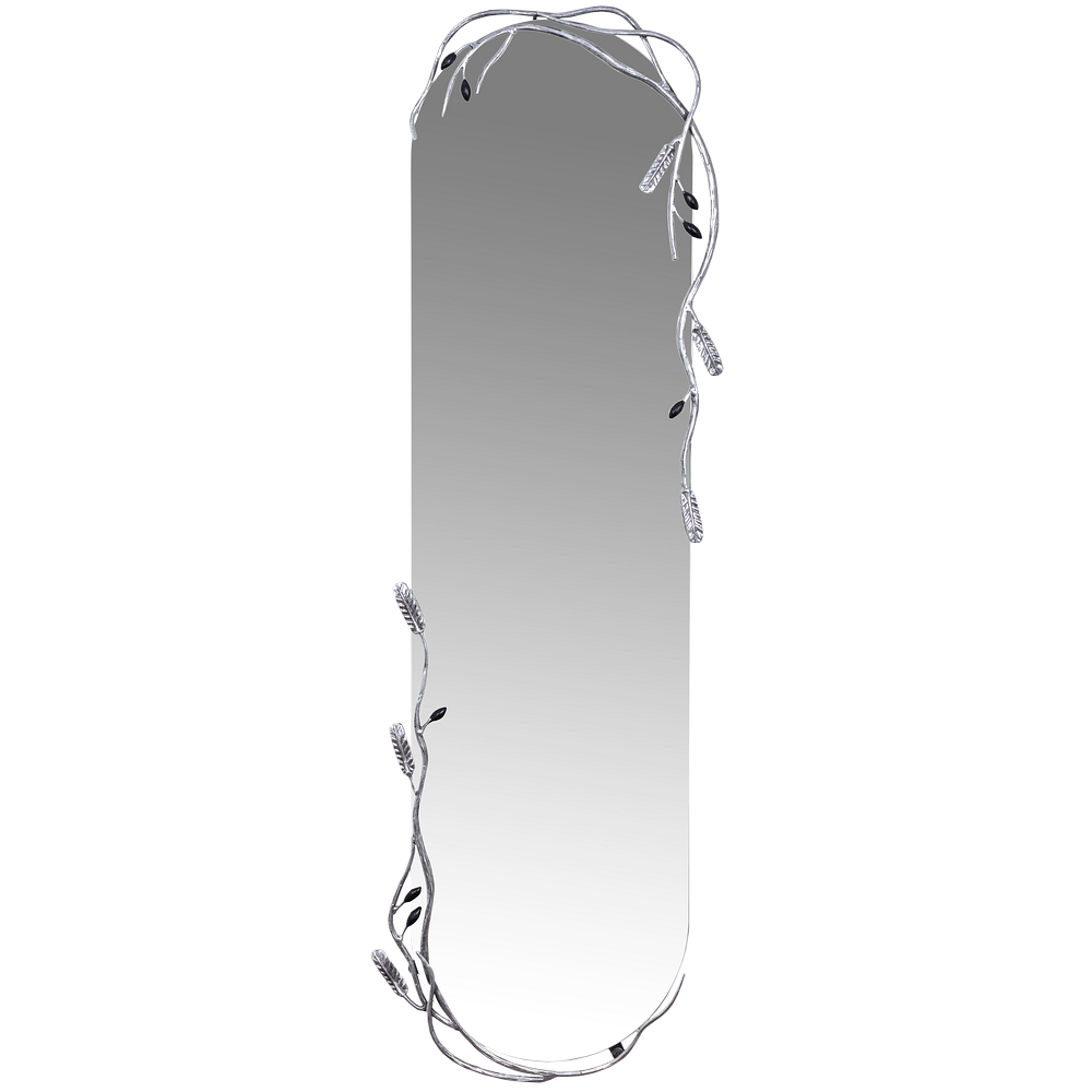 Зеркальное полотно закреплено на металлической раме из легированной стали. Декоративные элементы отшлифованы и патинированы вручную.
