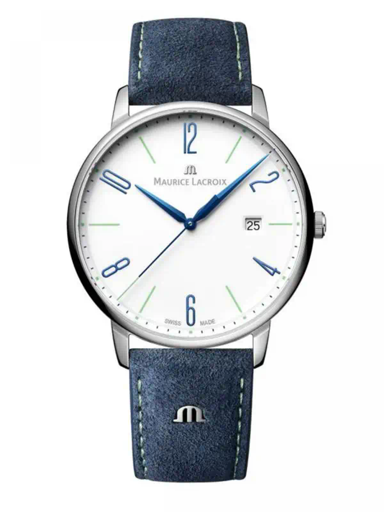 В ознаменование годовщины Eliros компания Maurice Lacroix рада представить новые часы Eliros Date 25th. Эти часы доступны с синим или белым лакированным циферблатом. Кроме того, владелец может выбрать синий ремешок из телячьей кожи или 9-рядный стальной браслет.