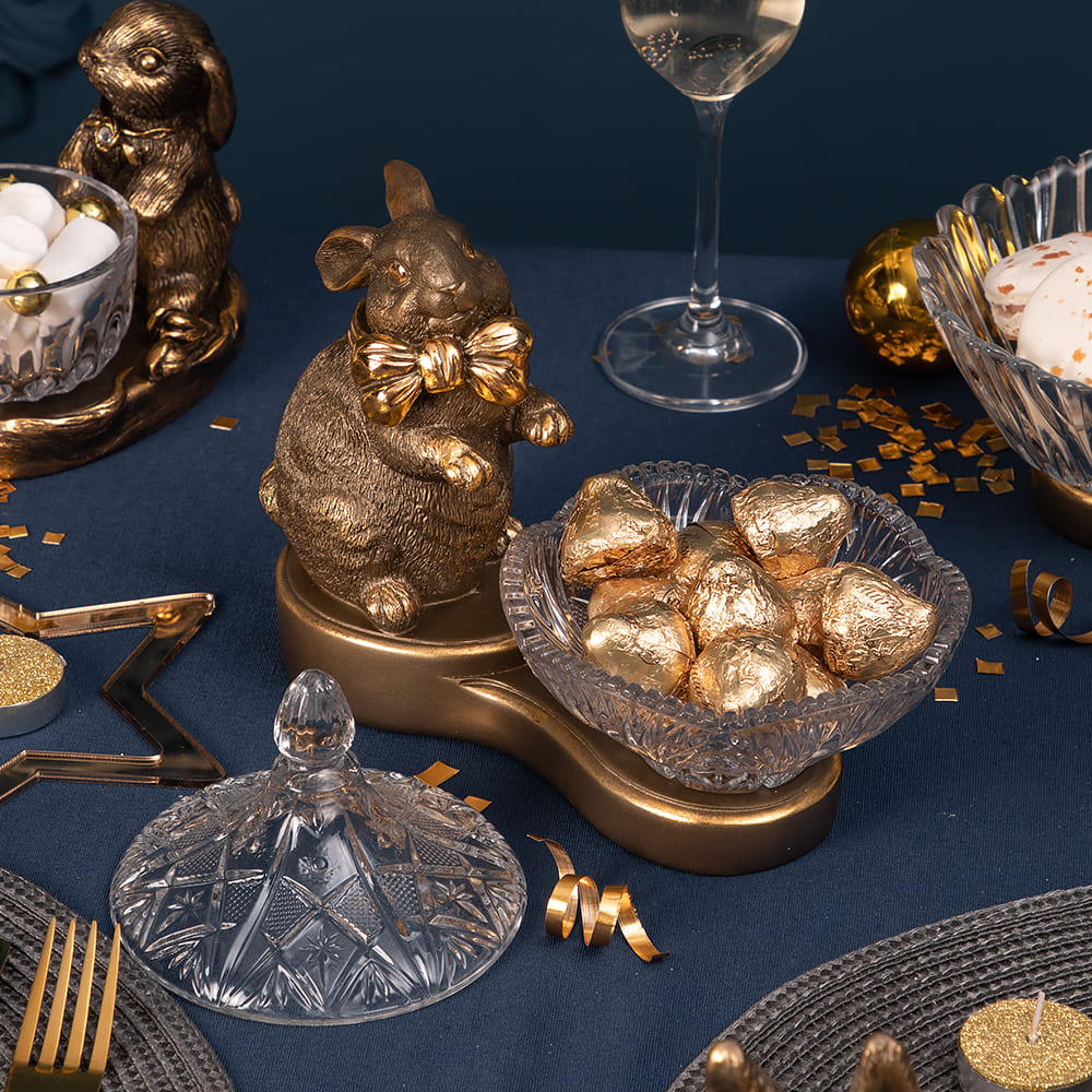 Посуда Bogacho 52141 Сахарница Кролик Банни Бронза 12×13 см
