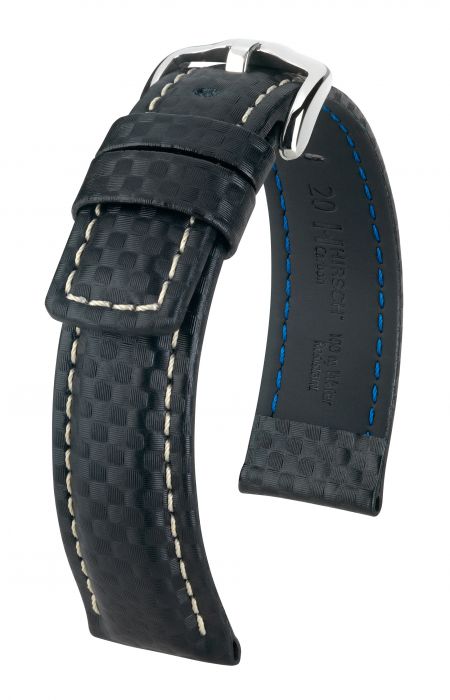 Ремень для часов 24мм Hirsch Carbon 025920-50-2-24 кожа телячья черный с пряжкой
