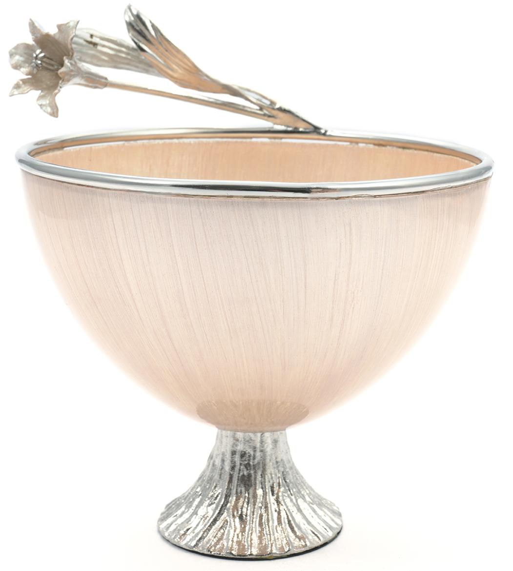 Чаша сервировочная Rhyton Lilium 3230459 жемчужно-белое стекло серебро 20×23 см