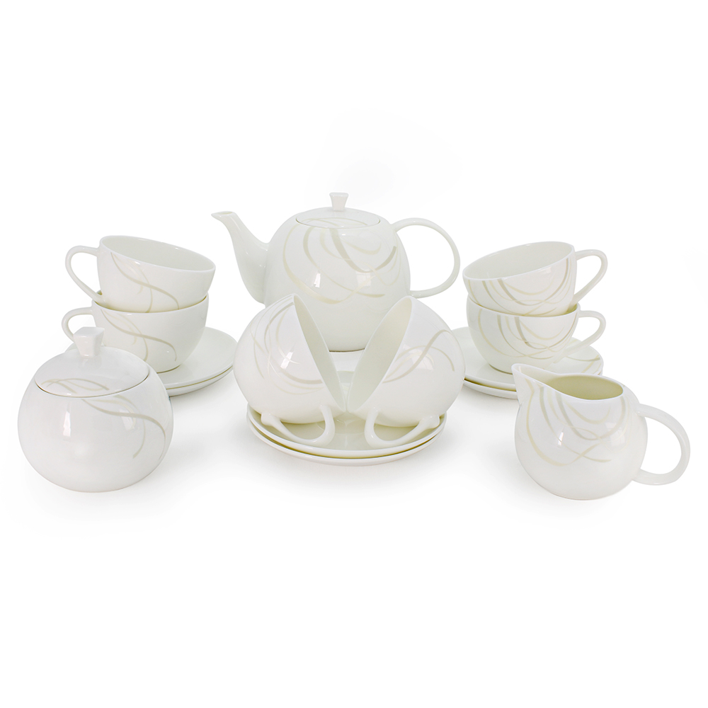 Чайник 1 шт (1600 мл), Молочник 1 шт (300 мл), Сахарница 1 шт (400 мл), Чашки 6 шт (250 мл), Блюдца 6 шт.