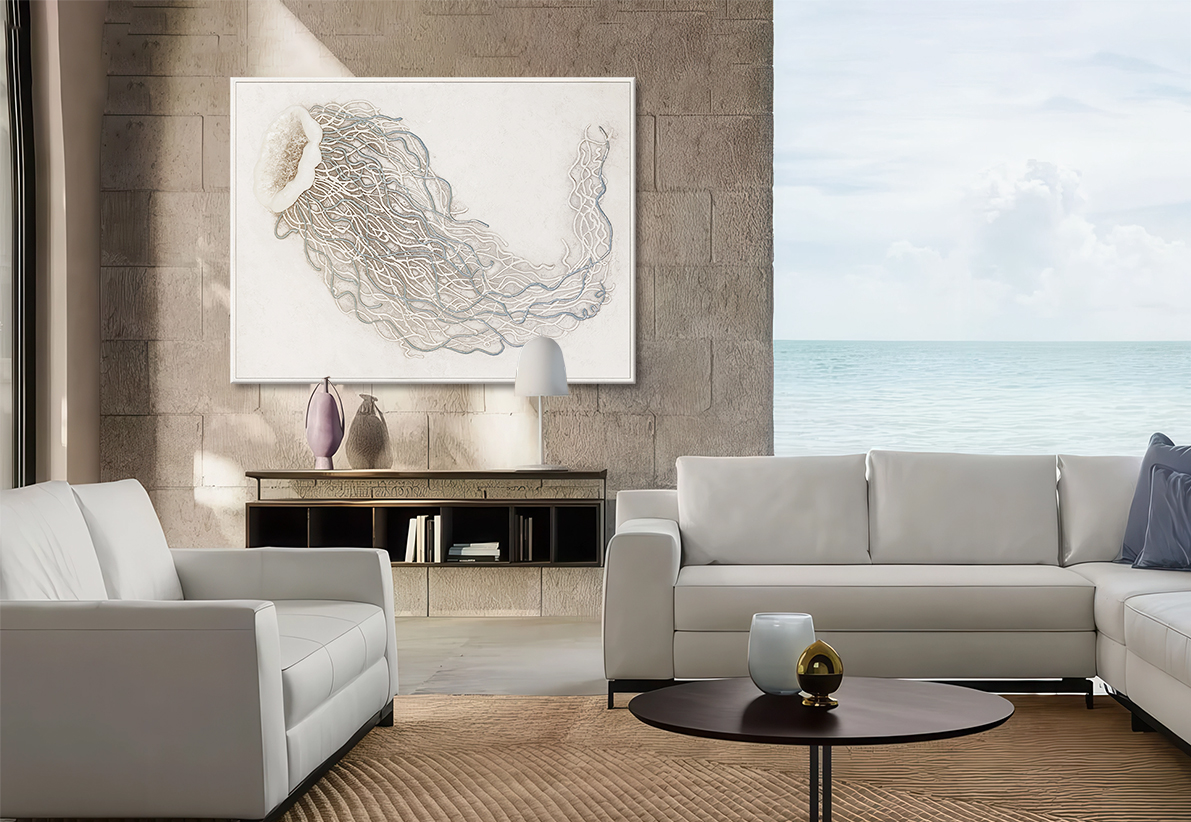 Декор: Поверх наклеенного принта, профессиональными художниками наносится декор. Каждый элемент прорабатывается с высокой детализацией, создавая трехмерный эффект. Картина приобретает глубину и реалистичность объемной живописи. В декоре используются лаки, краски, гели, декоративные штукатурки, глиттер и другие художественные материалы.