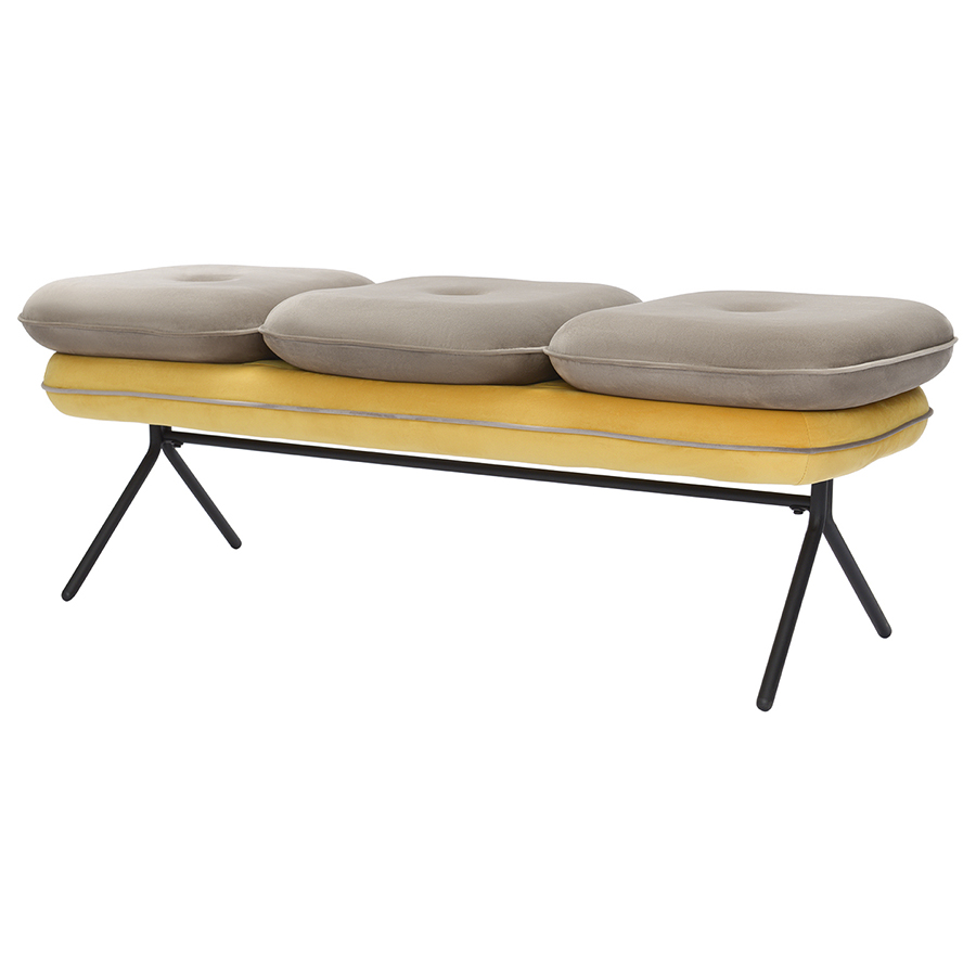 Материалы: 100% полиэстер, пенополиуретан, фанера, железо. Размеры: 123,9х43,1х42,9 см. Цвет: бежевый/желтый. Максимальная нагрузка – 150 кг.