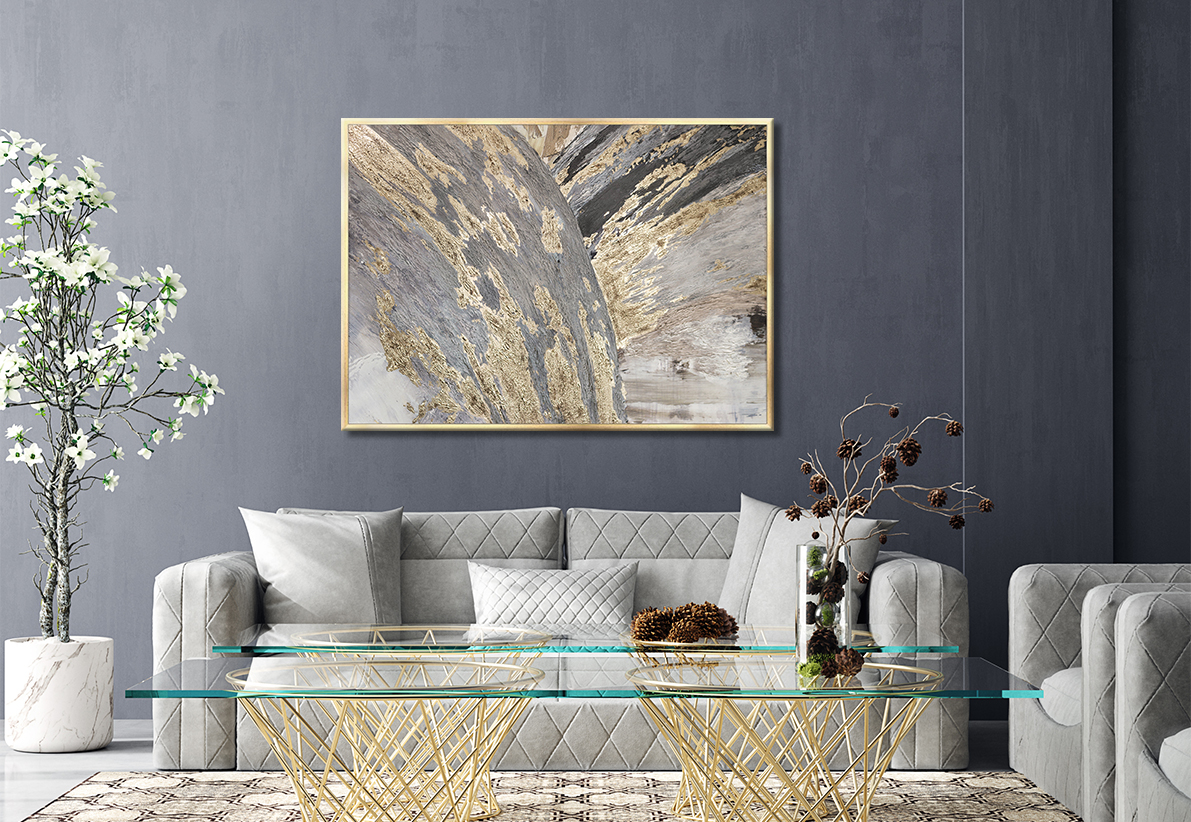 Панно Графис Арт Арт Декор 625342 Серая абстракция рама 4 серый,золотой 80×110 см
