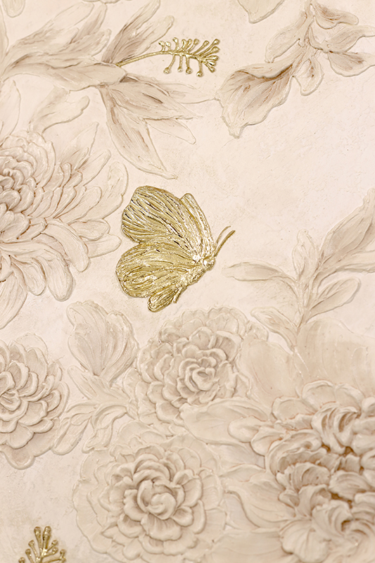 Декор: Поверх наклеенного принта, профессиональными художниками наносится декор. Каждый элемент прорабатывается с высокой детализацией, создавая трехмерный эффект. Картина приобретает глубину и реалистичность объемной живописи. В декоре используются лаки, краски, гели, декоративные штукатурки, глиттер и другие художественные материалы.