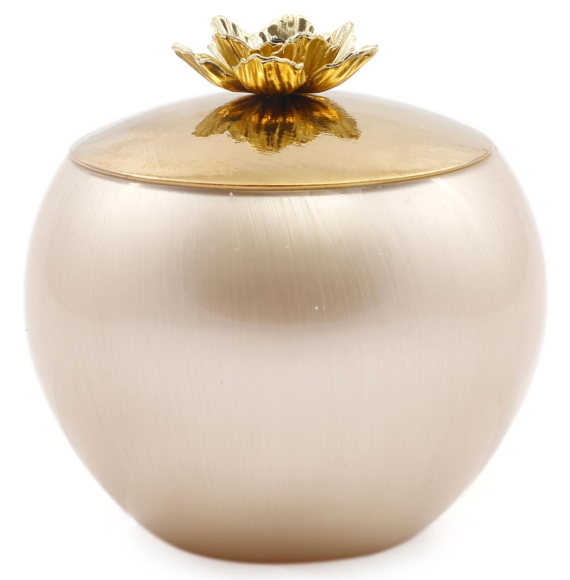 Чаша с крышкой Rhyton Mehr 3230483 жемчужно-белое стекло золотой 15×15 см