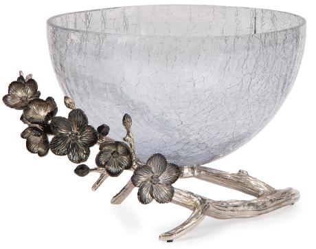 Чаша сервировочная Rhyton Lilium 3230458 жемчужно-белое стекло серебро 30×35 см